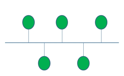 - 모든 노드들이 bus라는 하나의 회선에 연결되어 있는 형태이다.