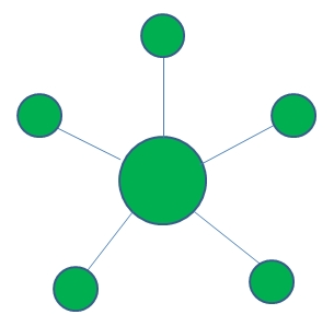 - 중앙 네트워크 장비에 모든 컴퓨터가 연결되어 있다.